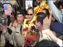 Lý Tống trên ảnh tươi cười vẫy tay chào mọi người với dáng vẻ khỏe mạnh và được biết ông lập tức kêu gọi hãy tẩy chay cuộc bầu cử quốc hội sắp tới. Tòa sơ thẩm Bangkok hồi tháng Chín 2006 xem hành động xâm phạm không phận Việt Nam và thả hàng chục ngàn truyền đơn xuống TP. HCM tháng 11 năm 2000 của ông Lý Tống là có cơ sở để dẫn độ ông về Việt Nam xét xử. Tuy nhiên vào ngày 03/04 vừa qua tòa phúc thẩm Bangkok đã đảo ngược lại phán quyết của tòa sơ thẩm và nói hành động của ông Lý Tống là có tính chính trị và không đe dọa an ninh Việt Nam và ông Lý Tống được tự do chứ không bị dẫn độ về VN để xử theo yêu cầu của Hà Nội.  | | | Cảnh đón tại sân bay |