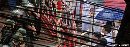 Theo hãng AP, giáo dân ở Thái Hà vẫn cầu nguyện trong lúc các lực lượng do chính quyền chỉ đạo tràn vào.