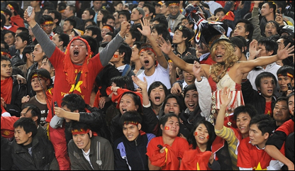 Vietnam. Nói về màu áo trắng may mắn (ở đây có bạn viết, màu áo là do nhà máy may làm còn quả bóng vào lưới đối thủ hay không
