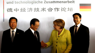 Ông Philip Roesler (phải) giữ chức phó thủ tướng kiêm bộ trưởng kinh tế trong chính phủ của bà Merkel.