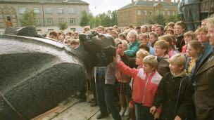 Tượng Lenin bị kéo đổ tại Valmiera ở Cộng hòa Latvia thuộc Liên Xô cũ vào ngày 1/10/1990 khi Latvia tuyên bố độc lập.