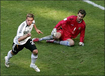Đội chủ nhà có màn mở đầu ngoạn mục khi Lukas Podolski đưa Đức dẫn trước khi trận đấu mới đến phút thứ 5
