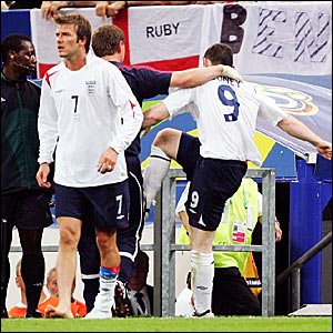 Ông Eriksson tập hợp đội quân đẫm mồ hôi của mình để dặn dò trước khi thi đấu hai hiệp phụ, trong khi các cổ động viên của Anh reo hò cuồng nhiệt