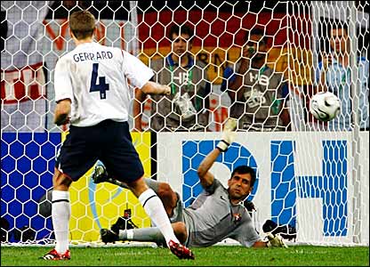 Hugo Viana và Petit đều đá ra ngoài, trong khi Hargreaves ghi bàn thắng đầu cho Anh, thế nhưng sau đó, Ricardo đẩy được cú sút của Gerrard