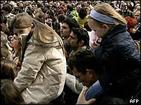 Cũng tại khu này người ta thấy sự hiện diện nhiều hơn của các cảnh sát viên cùng nhân viên cứu thương. Hôm Chủ nhật hơn 100.000 người đã tham dự lễ cầu hồn cho Đức Giáo hoàng. Trong những ngày tới con số tín đồ có mặt ở Rome có lẽ còn tăng lên gấp bội. Nhiều người đổ tới Rome những ngày này sẽ ở lại để tham dự lễ tang Đức giáo hoàng vào cuối tuần. Hiện chưa thể biết số người sẽ tới đây là bao nhiêu thế nhưng một số nguồn tin nói là có thể tới hàng triệu. Nhà chức trách Ý hiện đang gấp rút lên kế hoạch để đối phó với con số người khổng lồ này. Người ta dự định đặt các màn hình lớn trên đường phố để những người không tới được Quảng trường St Peter cũng có thể theo dõi các nghi lễ bên trong. Hệ thống giao thông công cộng được tăng cường, và nước uống được cung cấp cho người hành hương. Các sân vận động được biến thành các trại tạm trú bởi vì các khách sạn và nhà khách đều đã chật chỗ. Phản ứng của lãnh đạo thế giới Trong khi giáo dân trên toàn thế giới tiếc thương sự ra đi của Đức Giáo hoàng John Paul II, các lãnh đạo từ khắp thế giới cũng dồn dập gửi lời chia buồn tới Vatican. Tại Anh Quốc, Thủ tướng Tony Blair nói: Ngài đã đóng vai trò lớn trong sự sụp đổ của chủ nghĩa Cộng sản. Thế nhưng tôi nghĩ lý do mà toàn thế giới bày tỏ tình cảm với Ngài trong mấy ngày qua thì đó chính là bản chất con người của Đức Giáo Hoàng. Ngay cả nếu quí vị không phải là người Công giáo, ngay cả nếu quí vị không theo Thiên Chúa Giáo, trên thực tế, ngay cả nếu quí vị không theo bất cứ tín ngưỡng tôn giáo nào, thì quí vị cũng có thể thấy Đức Giáo hoàng John Paul là hiện thân thực sự của đức tin sâu sắc, là một biểu tượng sáng ngời cho thấy đức tin nghĩa là gì.