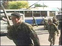 Một hình từ vụ tấn công vào Nalchik, Kabardino-Balkaria được truyền hình Nga đăng tải