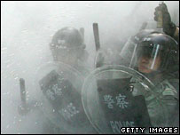 Cảnh sát tại Hong Kong phải vất vả với những người chống toàn cầu hóa trong cuộc bạo động tồi tệ nhất 16 năm qua. Những người biểu tình mang theo gậy tre lao thẳng vào hàng rào cảnh sát, còn cảnh sát thì phải dùng bình xịt hơi cay và baton để đẩy họ lại. Chín trăm người biểu tình đã bị quây lại và đang được tạm giữ trên một con đường gần nơi diễn ra hội nghị WTO. Nhà chức trách cho biết mười bốn người được cho là đã bị thương trong các cuộc đụng đọ, trong đó có năm người là cảnh sát. Các cuộc hội đàm đã không đạt được thỏa thuận về ngày mà các nước phát triển phải chấm dứt bảo hộ xuất khẩu nông sản. Mỹ và các nước đang phát triển muốn ngày đó là năm 2010, nhưng EU đã phản đối đề xuất này | |||||||||||||||||||||||||||||||||||||||||||||||||||||||||||||||||||||||||||||