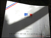 Các người được cho là có nhiều triển vọng nhất là ông Nicolas Sarkozy thuộc đảng UPM có khuynh hưóng trung hữu, bà Segolene Royal, ứng viên của đảng Xã Hội và một nhân vật thuộc cánh trung dung, ông Francois Bayrou.