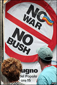 Nhiều người tụ tập tại Rome phản đối chuyến thăm của ông Bush với những khẩu hiệu chống chiến tranh