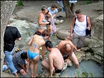 Nước suối tại đây được cho là có thể chữa được bệnh. Tôi đã nhìn thấy người ta ngâm mình trong bể nước sủi bọt.