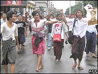 Trong ngày biểu tình thứ 10 liên tiếp, đã xuất hiện một số thay đổi. Tin cho hay đám đông biểu tình trên các đường phố của thành phố chính Rangoon đa phần là dân thường chứ không phải giới tu hành.