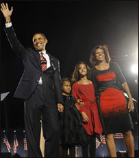“Tối nay tôi sẽ không đứng ở đây nếu thiếu sự hỗ trợ không mệt mỏi của người bạn thân nhất 16 năm qua, nền tảng gia đình, tình yêu của đời tôi, đệ nhất phu nhân sắp tới của đất nước…Michelle Obama.” Bà Michelle vừa được ca ngợi lẫn bị chỉ trích. Và sự chú ý dành cho bà sẽ chỉ càng trở nên sâu sắc khi bà bước vào Tòa Bạch Ốc. ‘Người mẹ tối cao’ Michelle Obama là một phụ nữ thành đạt. Tốt nghiệp trường Princeton và Trường Luật Harvard, bà từng là phó khoa ở Đại học Chicago. Bà gặp Barack Obama khi hai người cùng làm trong công ty luật ở Chicago. Ông phải yêu cầu nhiều lần trước khi bà đồng ý hẹn hò. Khi lên show Ellen DeGeneres, ông kể về lần hẹn hò đầu tiên với bà: "Sau lần đi picnic với công ty, tôi đề nghị mua kem cho cô ấy…và chúng tôi đến Baskin Robbins, ngồi trên vỉa hè ăn kem, rồi tôi hôn cô ấy." Cặp vợ chồng này có hai con gái – Sasha bảy tuổi và Malia lên 10. Bà Obama đã nói ưu tiên khi trở thành đệ nhất phu nhân là sẽ làm "người mẹ tối cao" và bảo đảm cho các con ổn định cuộc sống ở Washington DC. Sau nhiều năm, đây sẽ là lần đầu tiên một đệ nhất phu nhân nuôi con trẻ như vậy trong Tòa Bạch Ốc. Định hình chính sách Ngoài vai trò làm mẹ và chủ tiệc, các đệ nhất phu nhân thường chọn những mục tiêu mà họ tin theo: Laura Bush ủng hộ việc dạy học; Hillary Clinton lại chọn y tế.