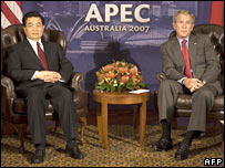 Theo hãng tin Kyodo, ví dụ của Nhật cho thấy cả 21 thành viên của APEC - Diễn đàn Kinh tế châu Á -Thái Bình Dương đều bị tác động của khủng hoảng tài chính. Trong tình hình này, Hoa Kỳ hy vọng sẽ tiếp tục nghị trình kinh tế từ Hội nghị G20 để bàn thảo với các lãnh đạo APEC. Trợ lý của Tổng thống Bush cho vấn đề kinh tế quốc tế, Dan Price nói với báo chí rằng ông Bush sẽ đề nghị APEC ủng hộ cho tuyên bố chung của G20 về các biện pháp làm ổn định thị trường tài chính và phục hồi tăng trưởng. Hoa Kỳ cũng tin rằng có thể đạt được thỏa thuận khung vào cuối năm nay nhằm xúc tiến Vòng Đàm Phán Doha về tự do hóa thương mại toàn cầu trong khuôn khổ WTO vốn bị ngưng trệ. Tiếng nói của Trung Quốc Trong cuộc họp các bộ trưởng APEC lần thứ 20 ở Lima hôm thứ Tư và thứ Năm, Trung Quốc nhắc rằng các nước phát triển trong APEC cần gánh chịu trách nhiệm nhiều hơn.