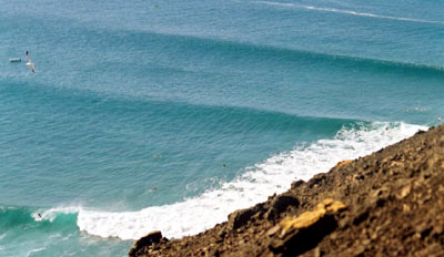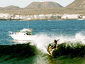Lanzarote - 'the village left' on a small day. I also surfed 6 - 8ft La Santa on a 6' 0 ft board - slightly under gunned ! - Steve Douglas