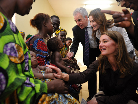 Melinda Gates, Carla Bruni-Sarkozy and Michel Kazatchkine (Global Fund) touring the Dangbo Village Hospital.