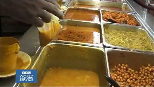 Many of the devotees had taken part in processions starting yesterday and lasting through the night and they'd heaped their plates with rice, or noodles and a variety of soups and curries served from steaming vats, the smells mingling with the sticks of incense burning outside.