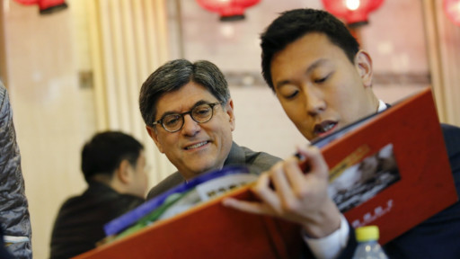 正在北京访问的美国财长雅各布·卢周二(3月19日)上午在与中国国家主席习近平会面后,到了北京朝阳区美国大使馆附近的一个饺子馆午餐。