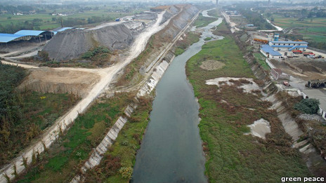 四川 绵竹市白衣村头的马尾河紧邻占地14公顷的磷石膏渣堆