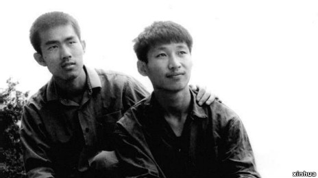 习近平(右一)大学时期在北京颐和园