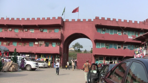 在一片低矮破旧房屋的背后,突然出现了一堵朱红色大墙,外观仿造中国长城,但是仿造的水平实在不敢恭维,用料也十分粗糙,好像是为拍电影而临时搭起的道具。城墙中间树着中国五星红旗,十分显眼,旁边是绿色的尼日利亚国旗。尼日利亚朋友说,这就是拉各斯有名的中国商城,也叫龙城。龙城的主人是一个来自中国大陆的商人。