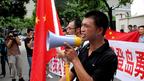 • 针对日本扣押香港保钓人士,中国向日本提出抗议。在日本驻上海领事馆前,抗议者在示威时高举中国国旗,并用扩音喇叭。