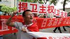 • 在日本驻上海领事馆前也发生抗议,示威者举起标语,表示要捍卫中国主权。