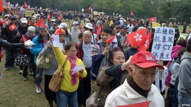 香港網民成立的一個民間組織「愛護香港力量」星期天(12月30日)舉行遊行,支持特首梁振英。